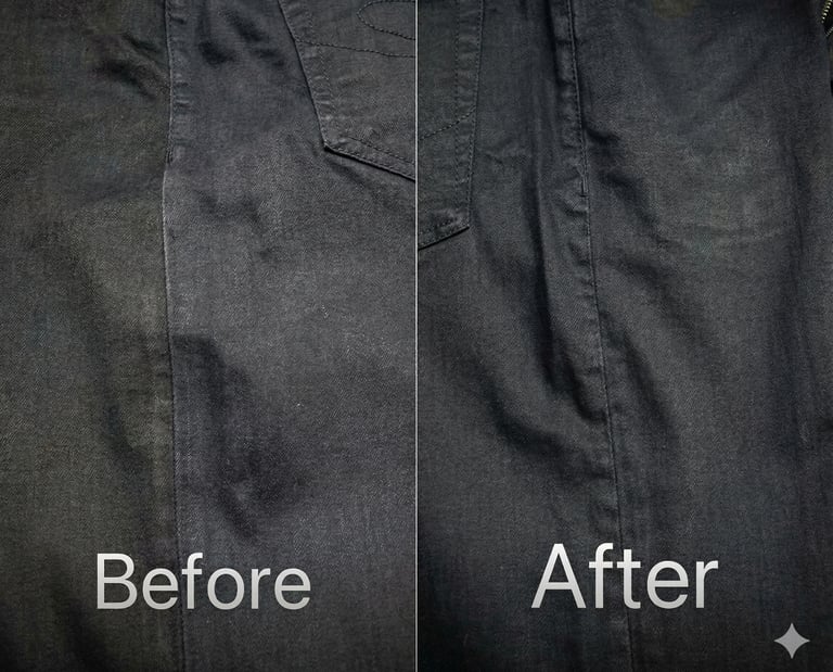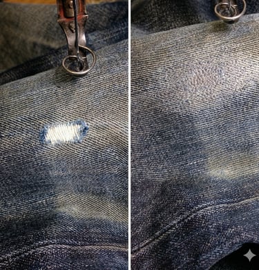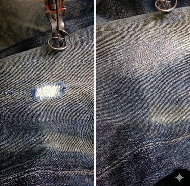 Inconsistencies—whether caused by sun fading, chemical bleaching, or uneven wear—require a surgical approach to restoration. Our technicians use tonal layering to build depth back into affected areas. By custom-blending pigments to match the garment’s specific dye lot, we eliminate visual "patchiness" and ensure a seamless transition between the treated area and the original fabric. The result is a uniform finish that restores the garment’s intended aesthetic.